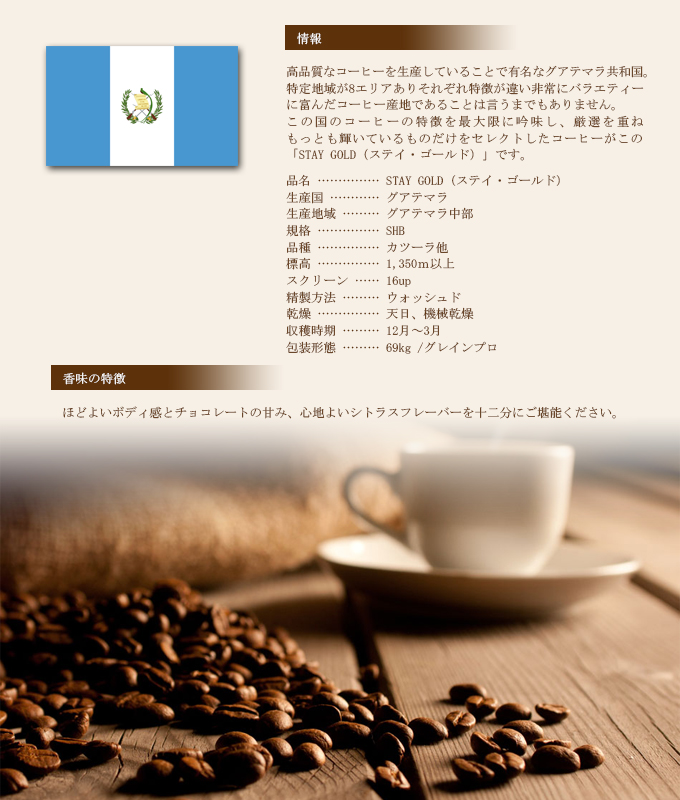 昔ながらのグァテマラらしいグァテマラをご賞味ください!